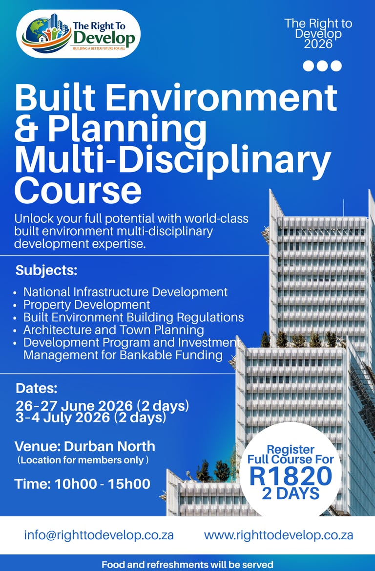 Welcome to The Right to Develop – South Africa’s leading built-environment skills development organisation dedicated to empowering practitioners, professionals, students, and aspiring investors.